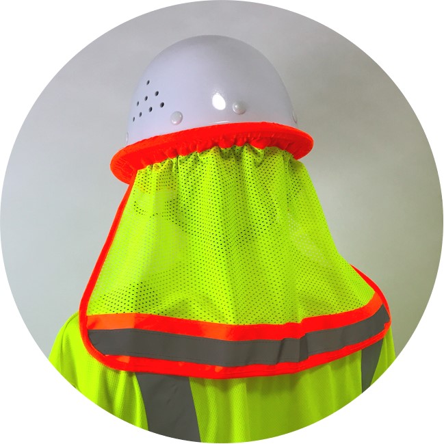 Made from lightweight and breathable 100% polyester mesh fabric, the GRC-A10 allows airflow to reduce heat buildup during long working hours. The integrated elastic headband with hooks ensures secure attachment to hard hats without affecting comfort or helmet stability. Silver reflective tape with contrast trim improves visibility in daytime, dusk, and low-light conditions.