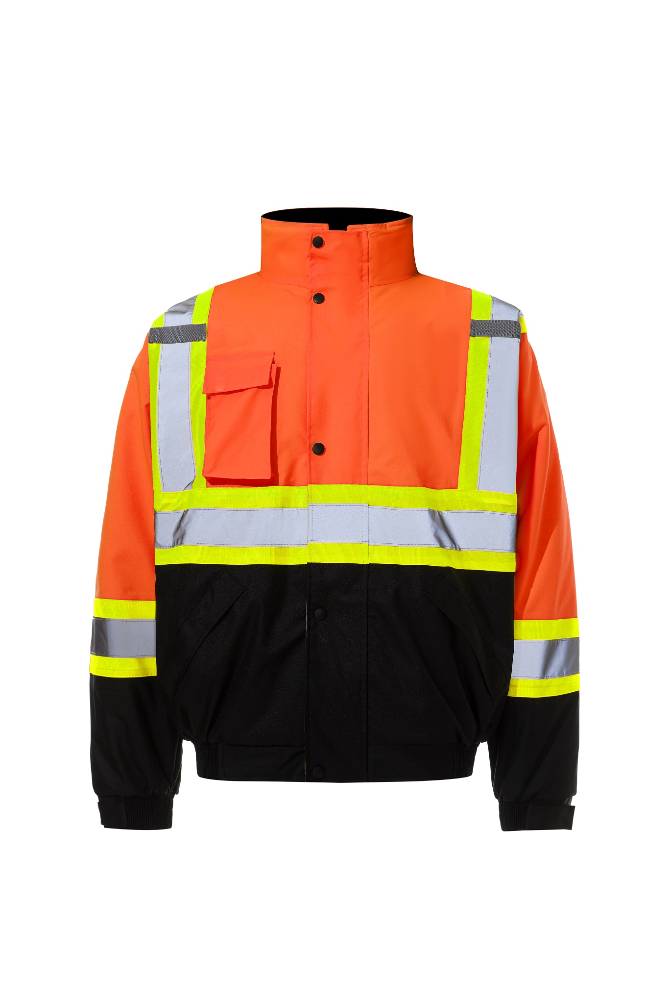 Equipped with 2-inch wide silver reflective tape with contrast trim, it enhances visibility in both daytime and low-light environments, improving on-site safety. The jacket features a 100% polyester 190T taffeta lining for comfort and insulation, while the zipper front with storm flap and adjustable cuffs helps block wind and moisture.