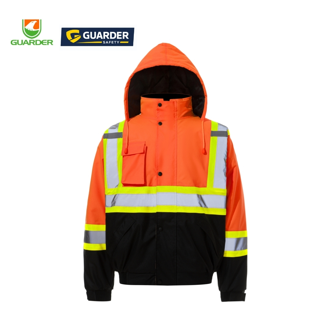 As a professional reflective workwear manufacturer, GUARDER SAFETY produces durable hi-vis clothing using reliable materials and stable production standards. This jacket is made from 300D Oxford fabric with PU coating, offering strong waterproof performance to keep workers dry in rain and harsh weather conditions.